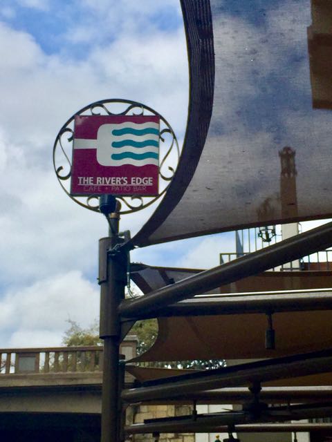 First stop, lunch.  We knew we wanted a table on the water, and we also wanted to try some place new, so we stopped in at River’s Edge Cafe and Patio Bar.  We had been eating mostly Mexican food and barbecue up to this point, both at restaurants and cooking on our own, so we decided to try something different.  Steve had a Chinese pulled pork sandwich, and I had a shrimp fajita salad.  Do we know how to live outside the box, or what?
