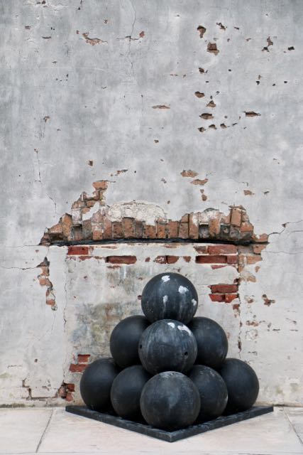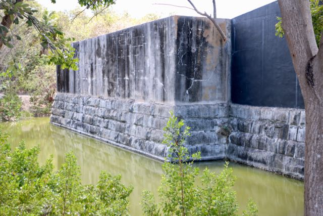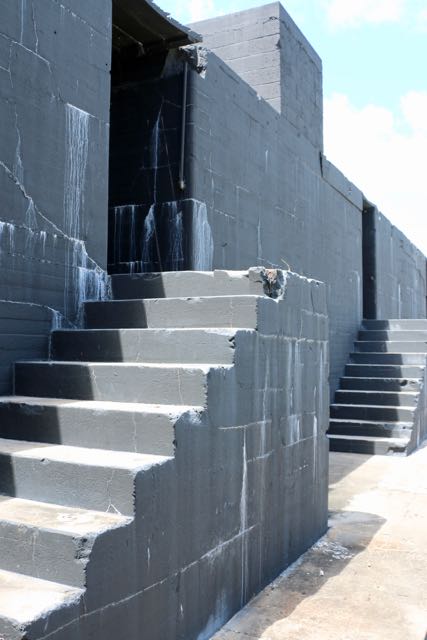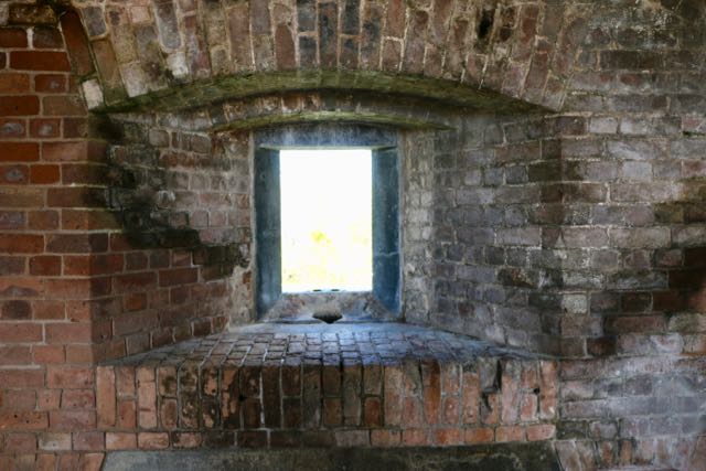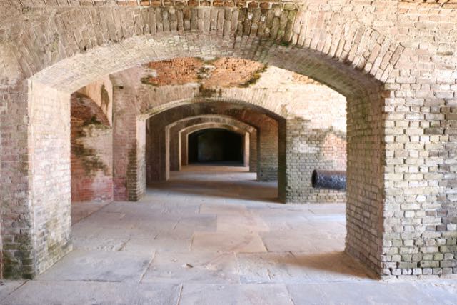 What first struck us was the moat surrounding the fort.  That, and the shaded park on the outside, compared to the pristine interior, stark and hot when in the sun, with grass as the only greenery.  Fort Taylor is a mix of jet black walls, brick walls, uniform chambers, identical arches, and an evolving architecture.
