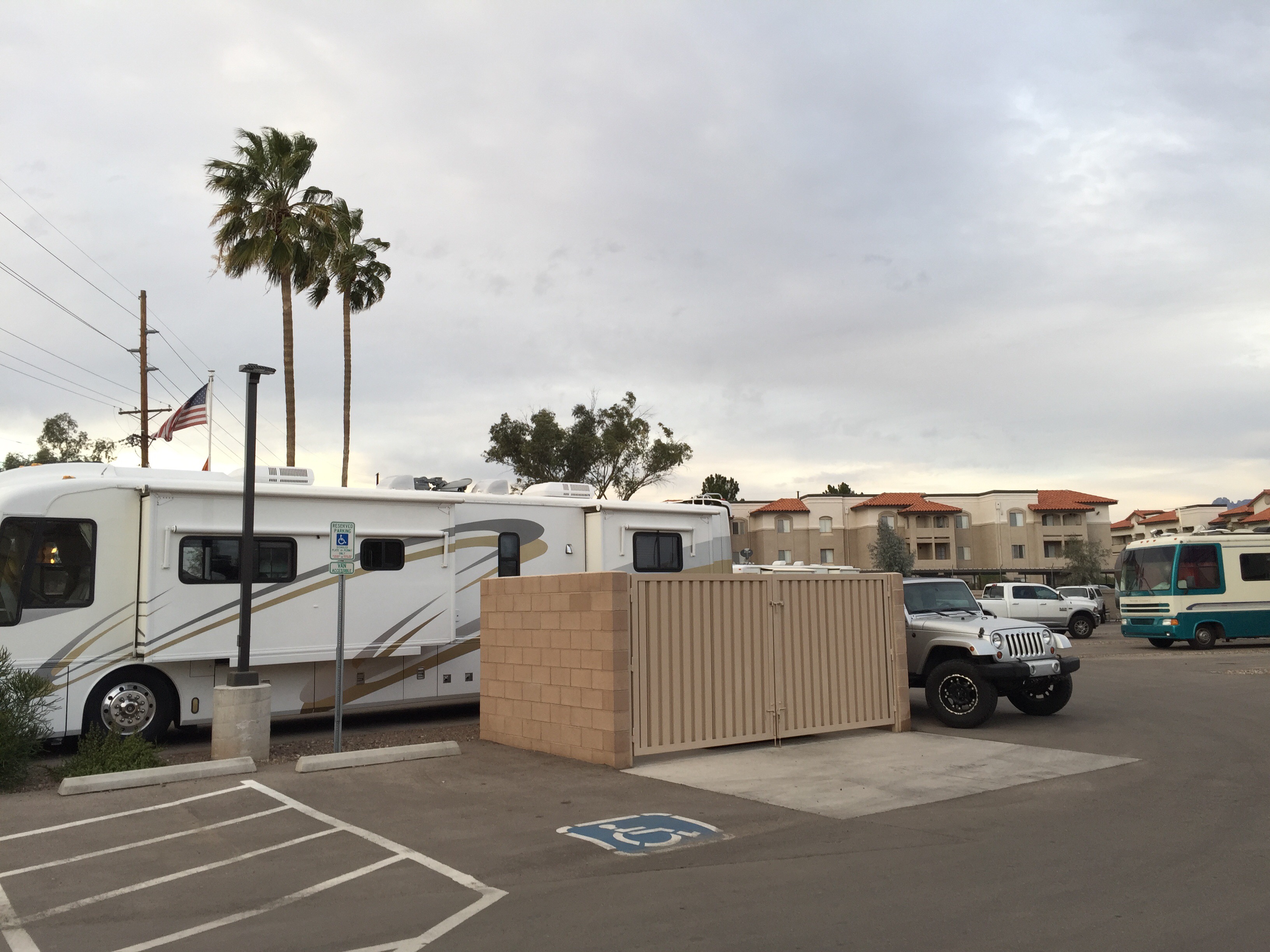 Our first night’s stay was at a very small park located super close to U of A and downtown Tucson. Sentinel Peak RV Park is situated between apartment complexes, in what could have easily been an automotive repair shop in a different life. The office and clubhouse are housed in a newer, clean metal building with a few rollup doors that have been permanently closed to make the “clubhouse”. It’s the only park considered to be in the downtown area, is super clean, all paved, and offers full hook-ups. It’s not really much to write home about, but the person that helped me was very kind and professional, and hey, it got the job done.