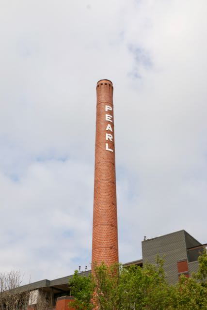 A different look at The Pearl chimney tower, just outside The Boiler House
