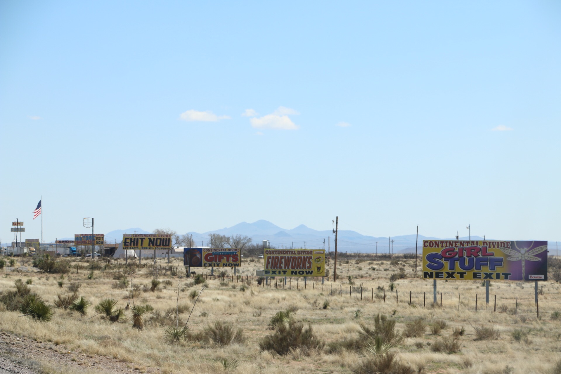 There’s a tourist trap that claims to be at the Continental Divide. Let it be known:  It’s MILES before the Continental Divide. If you are planning to stop and take your picture with this sign (something we would NEVER do on the highway shoulder in an RV with a toad), or even capture the sign with your camera as you zoom by, you’ll give up long after that tourist trap before it actually appears. Something I’ve done many, many times.  But, yippee skippy!  I captured it this time!