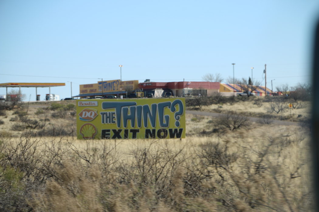 What’s “The Thing”, you ask? It’s a cheesy “mummified” mother and child (not real), supposedly handmade by a carnival sideshow owner to lure in tourists in the early mid-century.