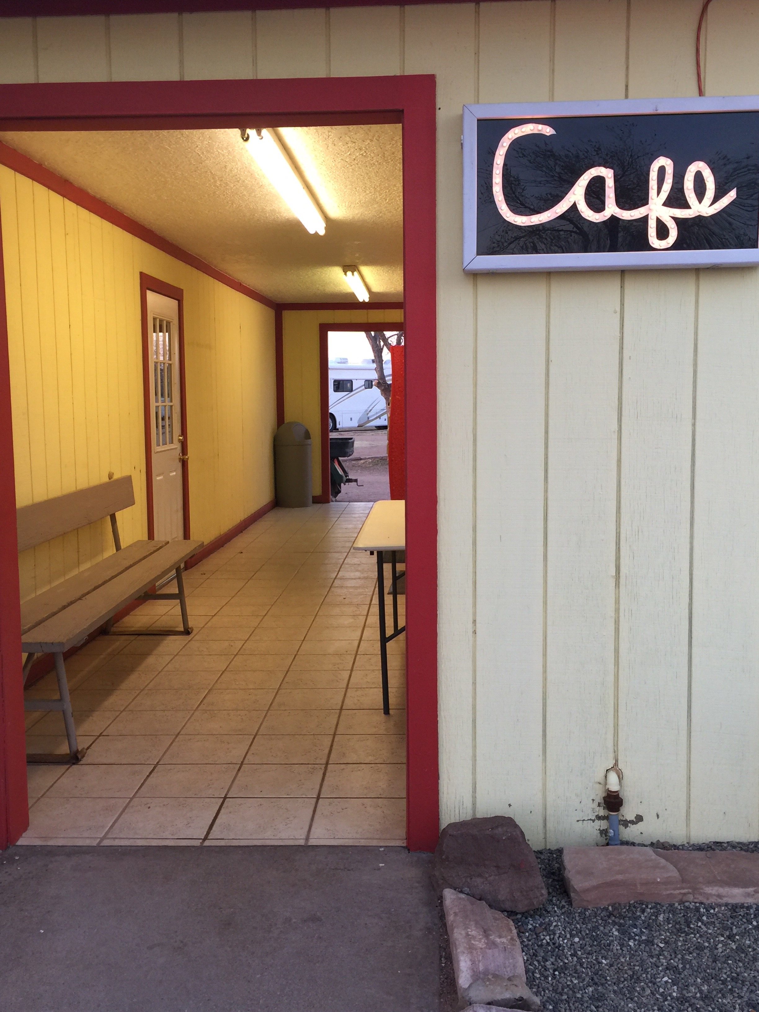 But, best of all, Van Horn RV Park has its own little café.  The café is open for breakfast and dinner, which tells you this place is geared for long-haul overnighters that plan to hit the road early the following morning.  We’ve never had dinner in the café, but if anyone ever stops in there some choices include Salisbury steak, burgers, and fried catfish.